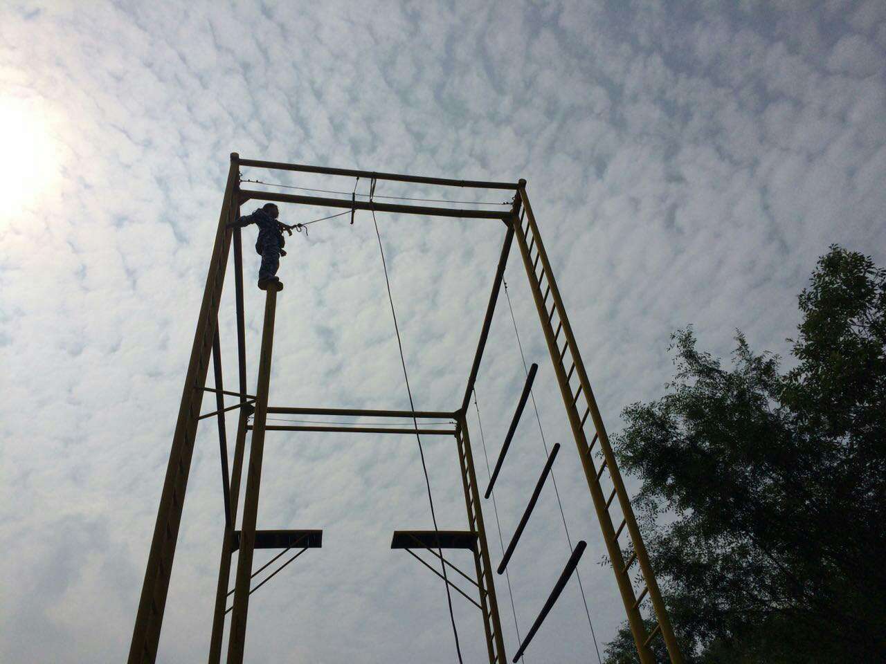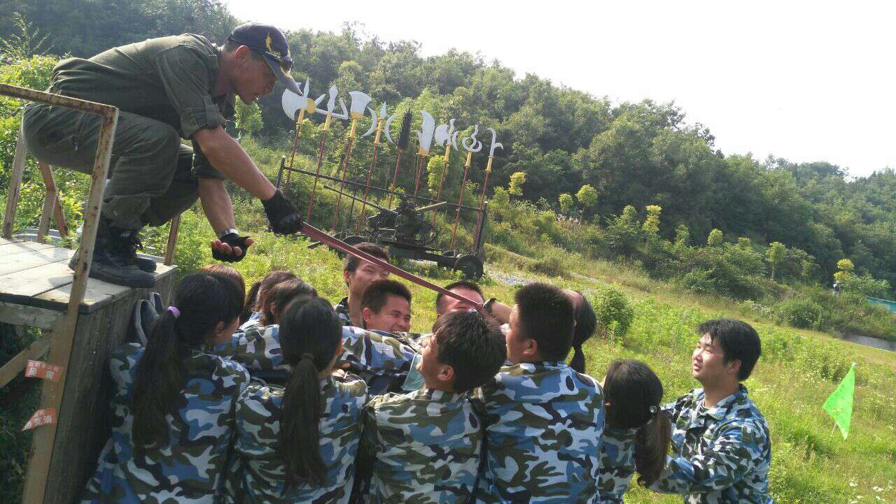 5月30日凌晨,一支由30人組成的隊(duì)伍迎著朝霞,乘坐公司的專車直奔西游記公園的玉龍戶外拓展中心。剛下車教練要求所有人立刻換上服裝整隊(duì),所有參加戶外拓展活動(dòng)的員工都身著統(tǒng)一的迷彩服,隨著分隊(duì)、取隊(duì)名、想口號(hào),選隊(duì)歌等緊張有序地進(jìn)行,教練宣布活動(dòng)正式開始。